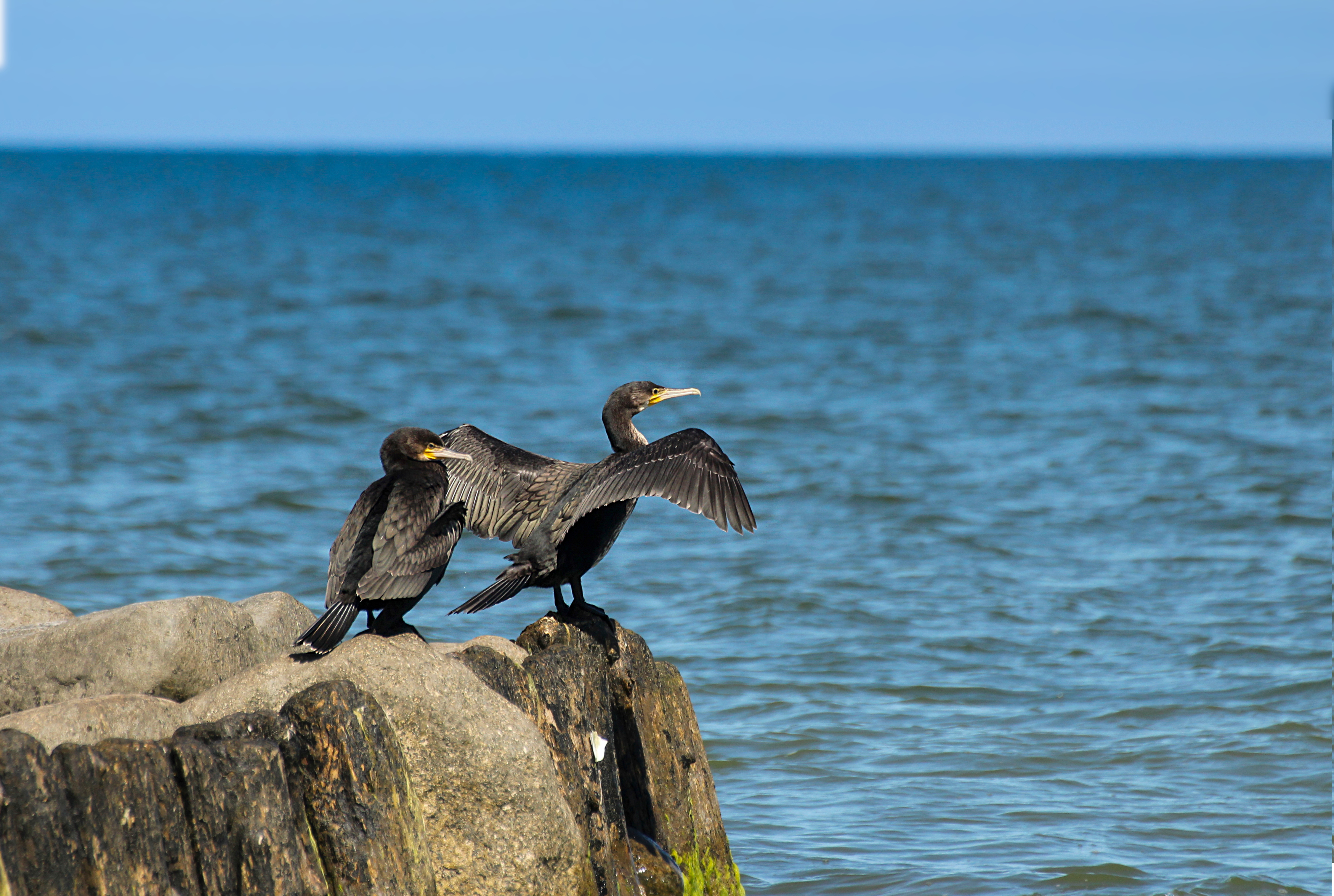 Бакланы отдыхают и сушат крылья