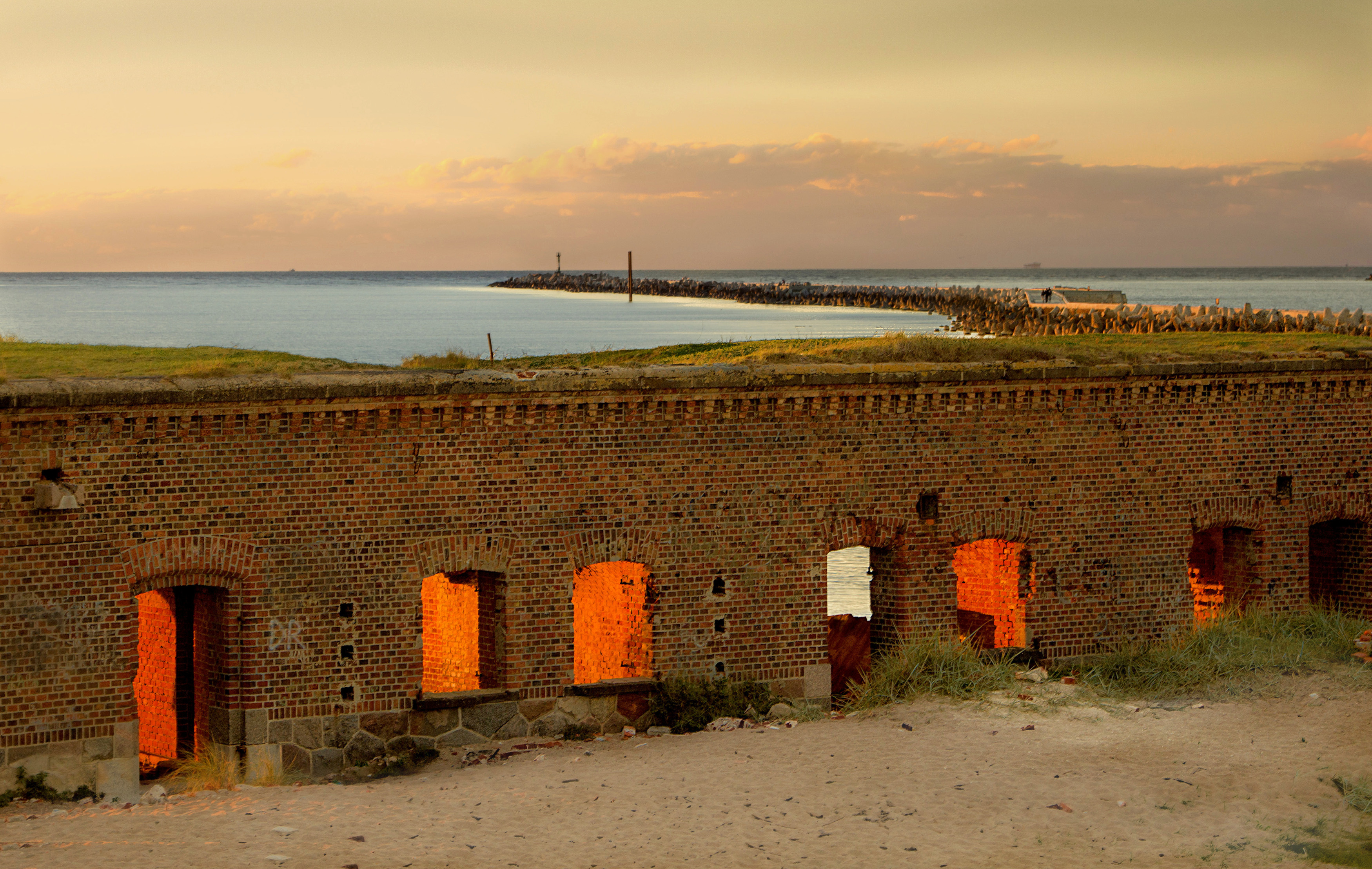 Закатное солнце пробивается сквозь руины форта