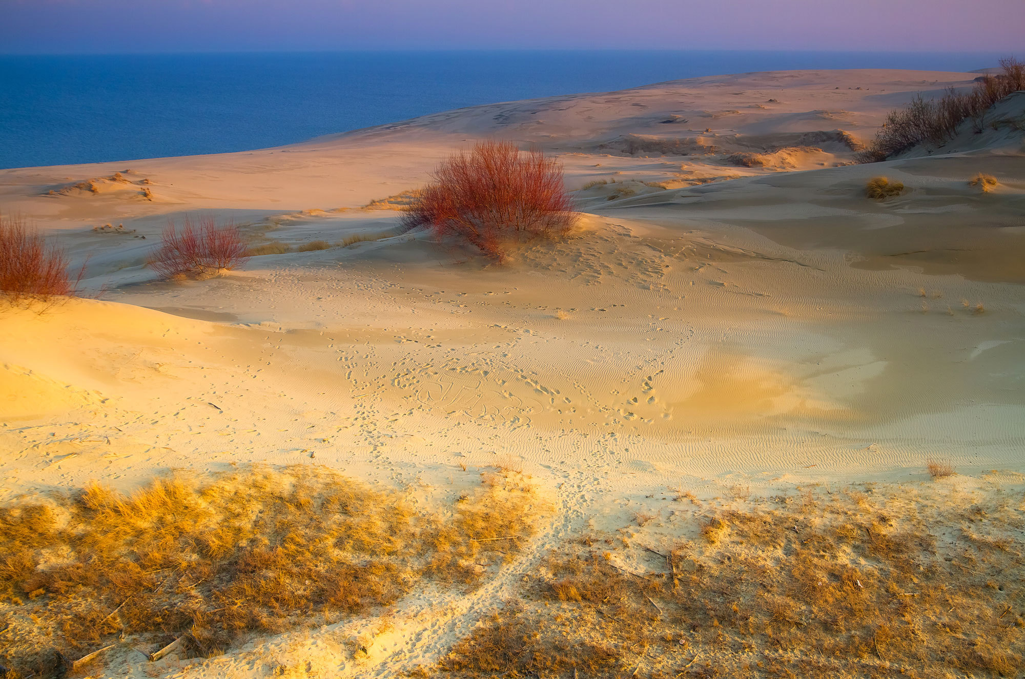 Вид на Куршский залив сквозь золотые дюны.
