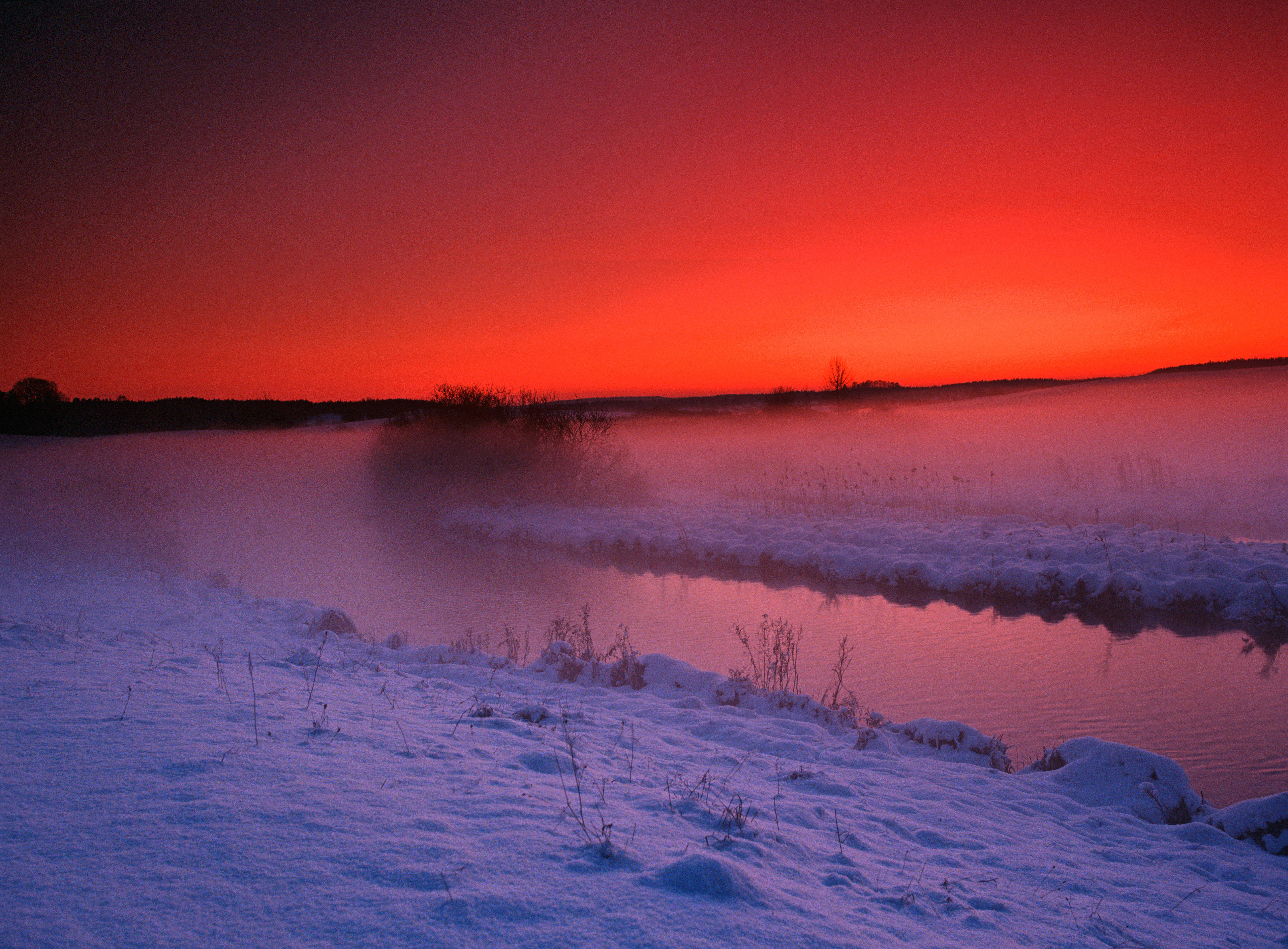 Zimowy zmierzch nad Łyna przy temperaturze -20 stopni C.
