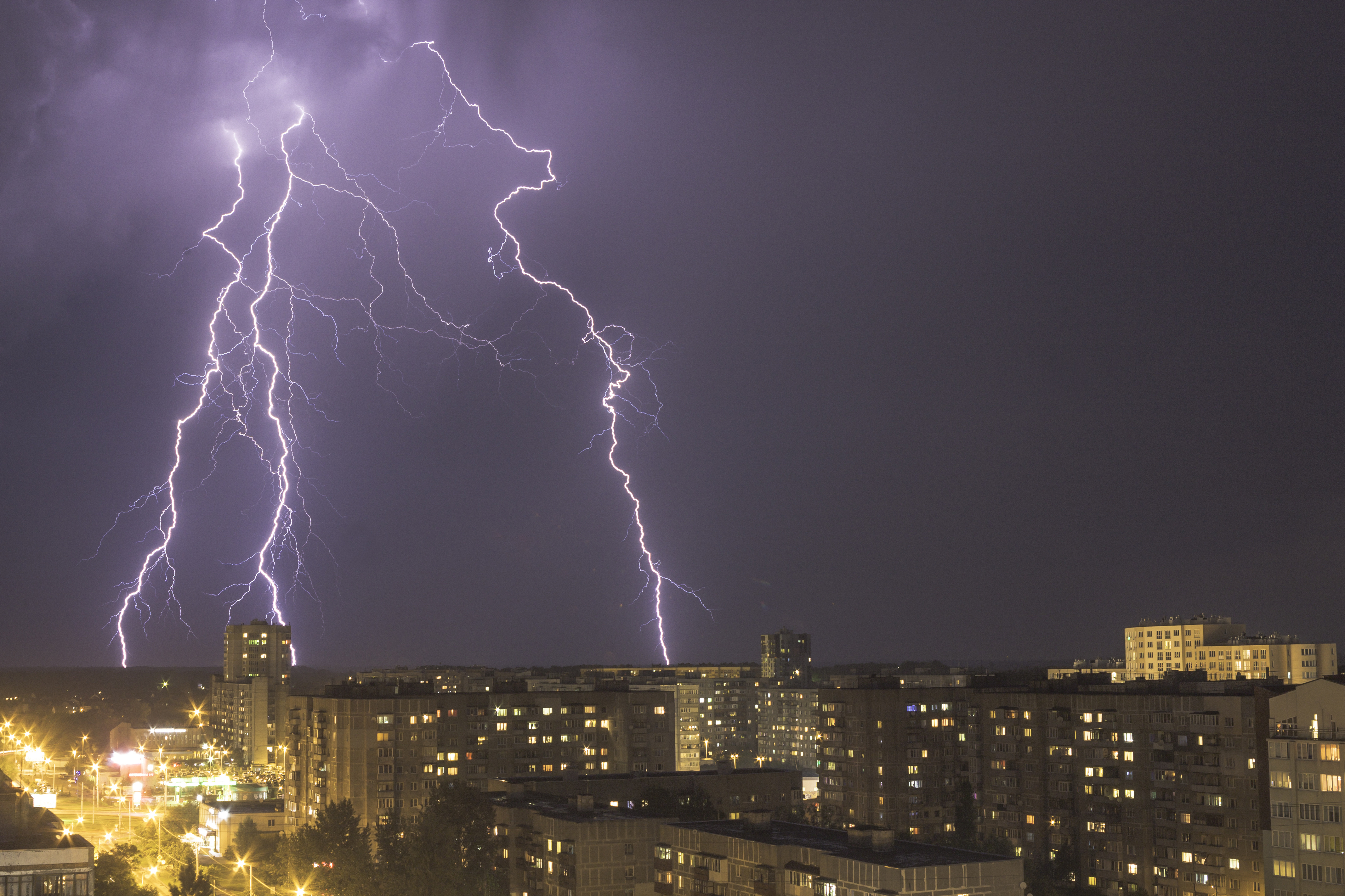 "Молния \""Блзнецы\"" фотография сделана с крыши 12-го этажа на ул.Горького(30-05-2016г. выдержка 30 секунд ИСО-200, Sony nex F3+50mm объектив)"