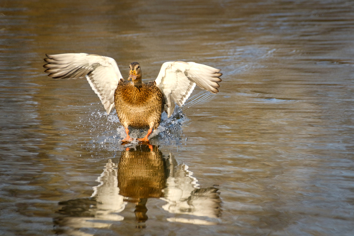 Приводнение утки на озеро