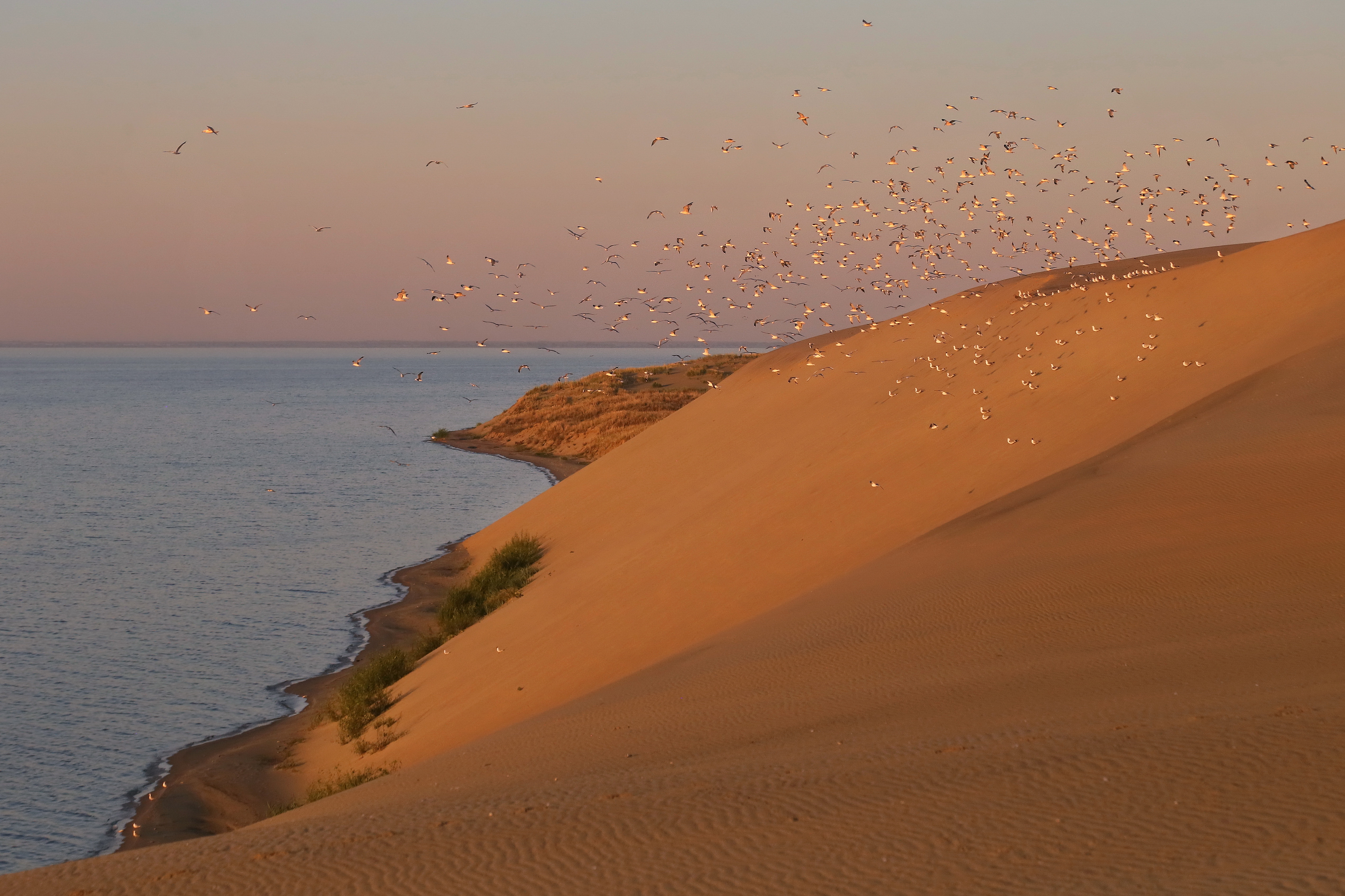 Одна из самых высоких дюн берега Куршского залива и самые многочисленные ее "хозяева"-чайки