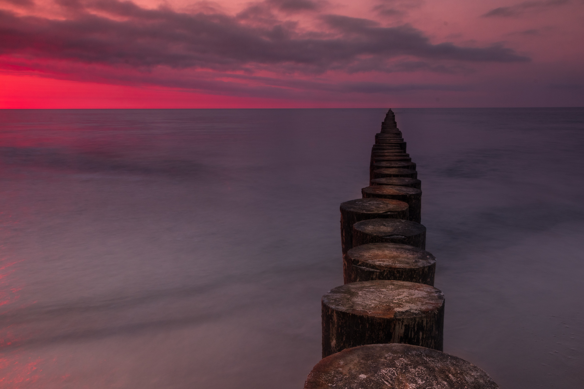 Zachód Słońca nad brzegiem morza, wiosna
