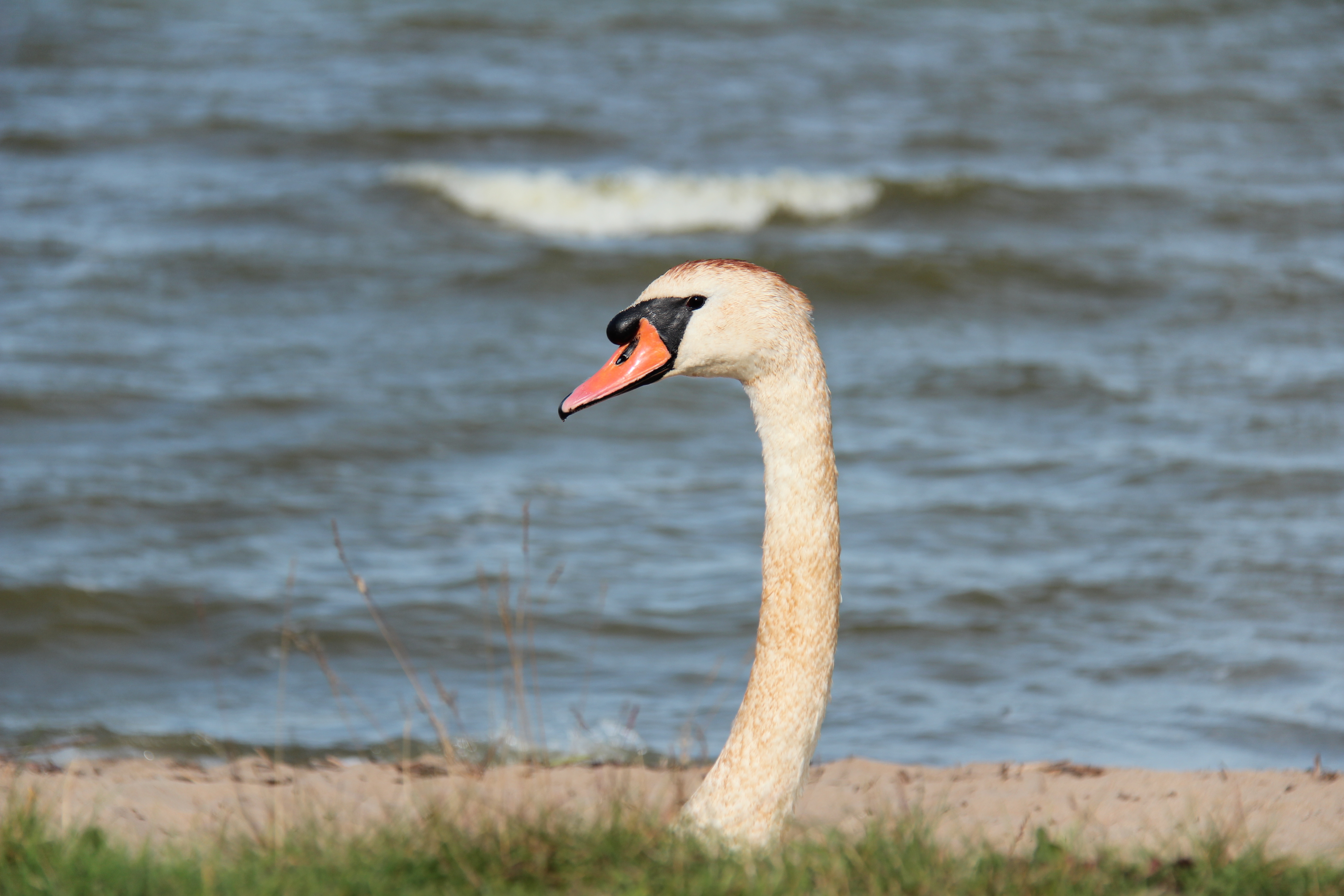 Лебедь на берегу у залива