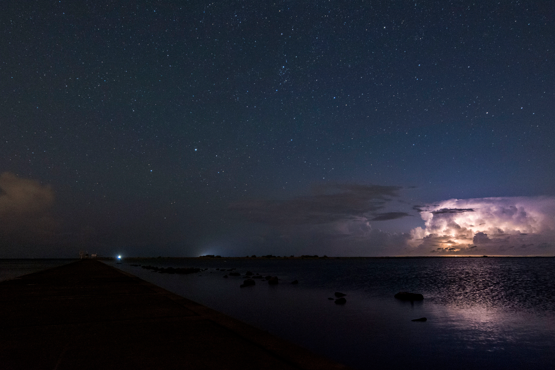 Nocna burza nad Zalewem Wiślanym.