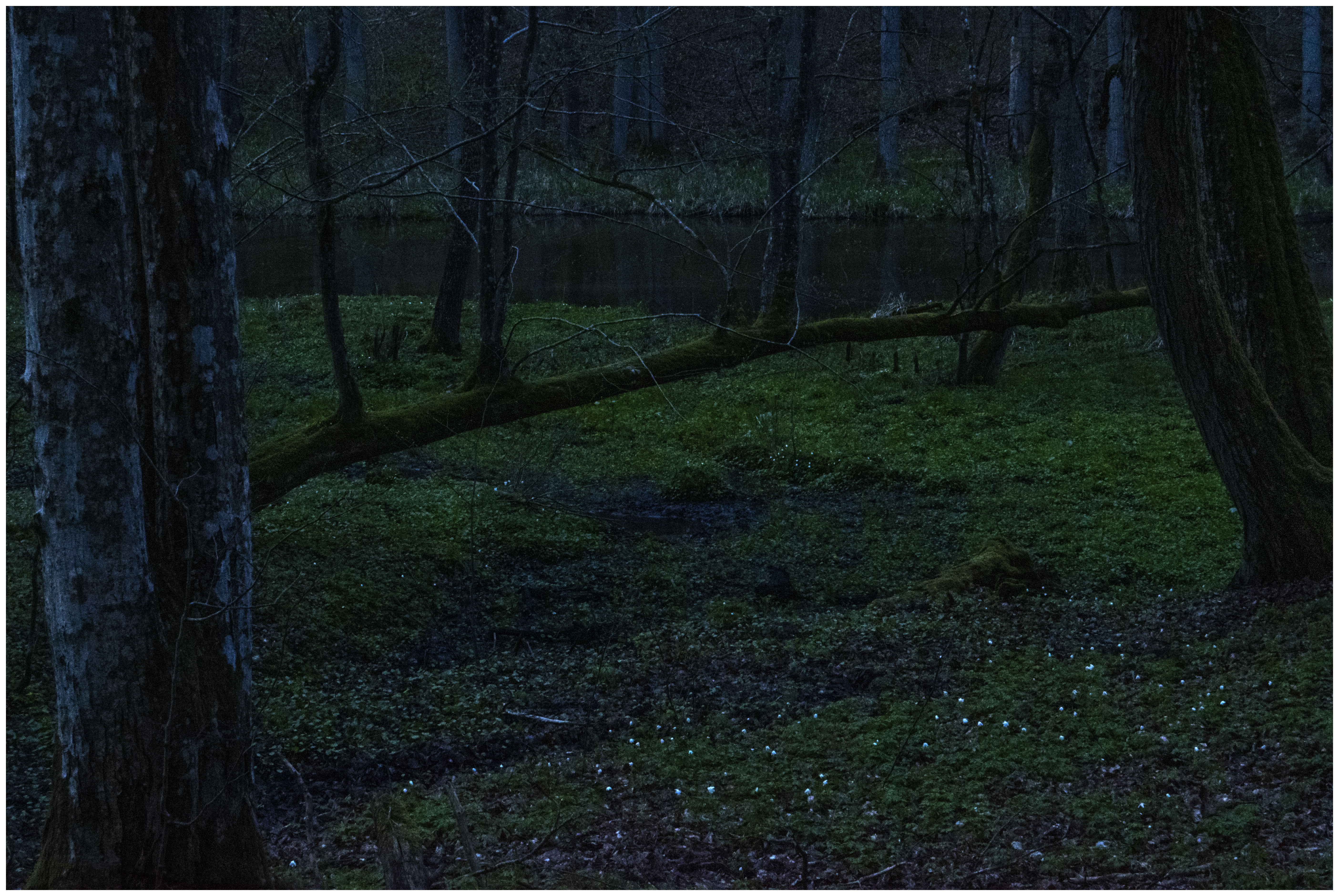 Wiosną 2021 r odkryłem, że las nocą wygląda zupełnie inaczej niż w dzień, jest tajemniczy. Wykonałem serię wieczornych i nocnych plenerów fotograficznych, między innymi do Rezerwatu Las Warmiński nad brzegiem przełomu rzeki Lyny. Prezentowane zdjęcie powstało podczas jednego z tych wypadów.